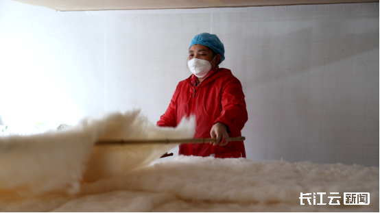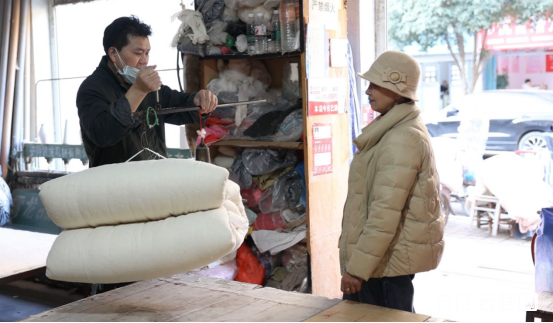 “我们60年代的人是在农村长大的,从小就盖棉花被,习惯了这份温暖。而且被子盖久了,拿给师傅翻新一下又跟新的一样。”襄阳市南漳县城关镇居民刘琼说。