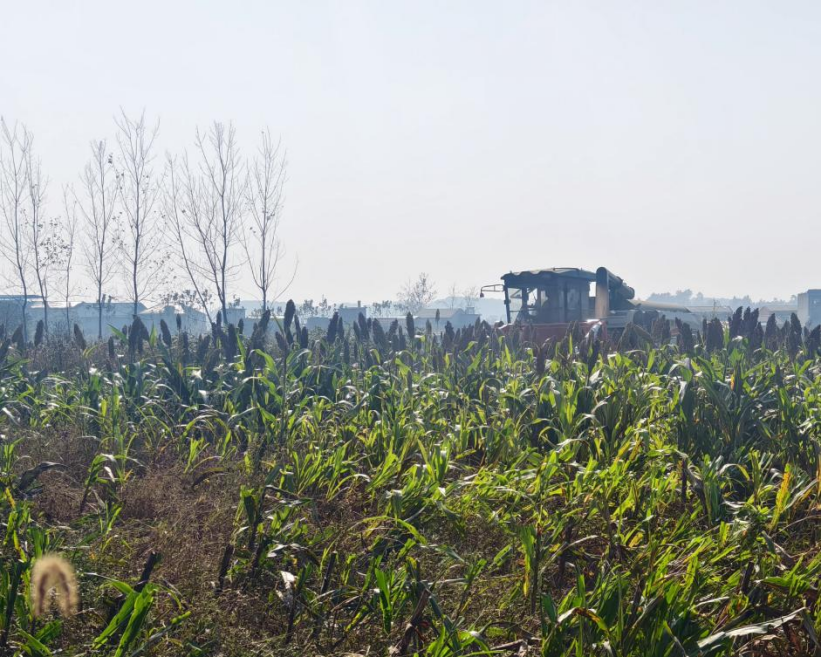 正值再生高粱的第二茬丰收,一台大型联合收割机游刃有余地在柏杨山村的丘陵地带起伏行进,现代化机械摆平了传统农业里恼人的障碍,眼前这片地不仅效益见涨,种起来也不像从前那么吃力了。