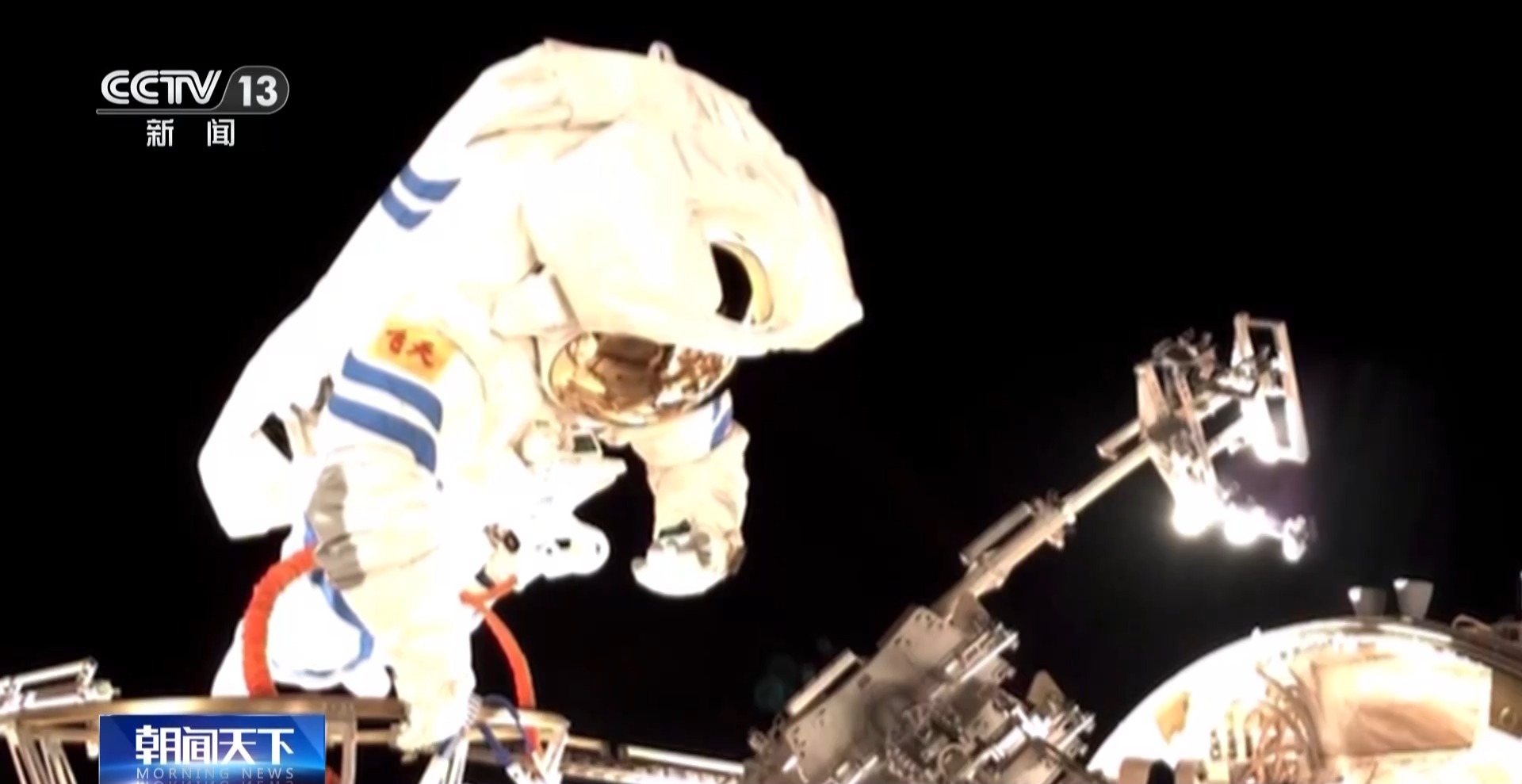 中国航天员科研训练中心 翟志宏:后续,我们重点对天和核心舱、梦天舱等其他两个舱的防护进行进一步出舱作业,按照预定任务,每次去装不同舱段防护板。目前工作进程都是按照预定计划进行的。