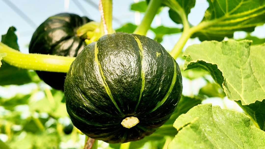 走进贝贝南瓜种植基地,现代化大棚整齐排列。棚内,绿意盎然的藤蔓上挂满了精致饱满的贝贝南瓜,色泽鲜亮,长势喜人。基地引种的日本优质品种“惠和一号”,以其香甜粉糯的口感和丰富的营养价值,深受市场欢迎。