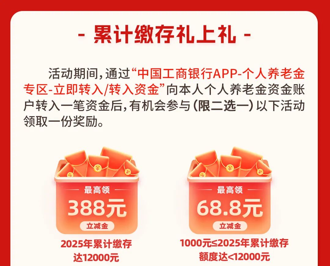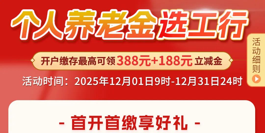 【限时】“个人养老金选工行”,最高领388元+188元微信立减金