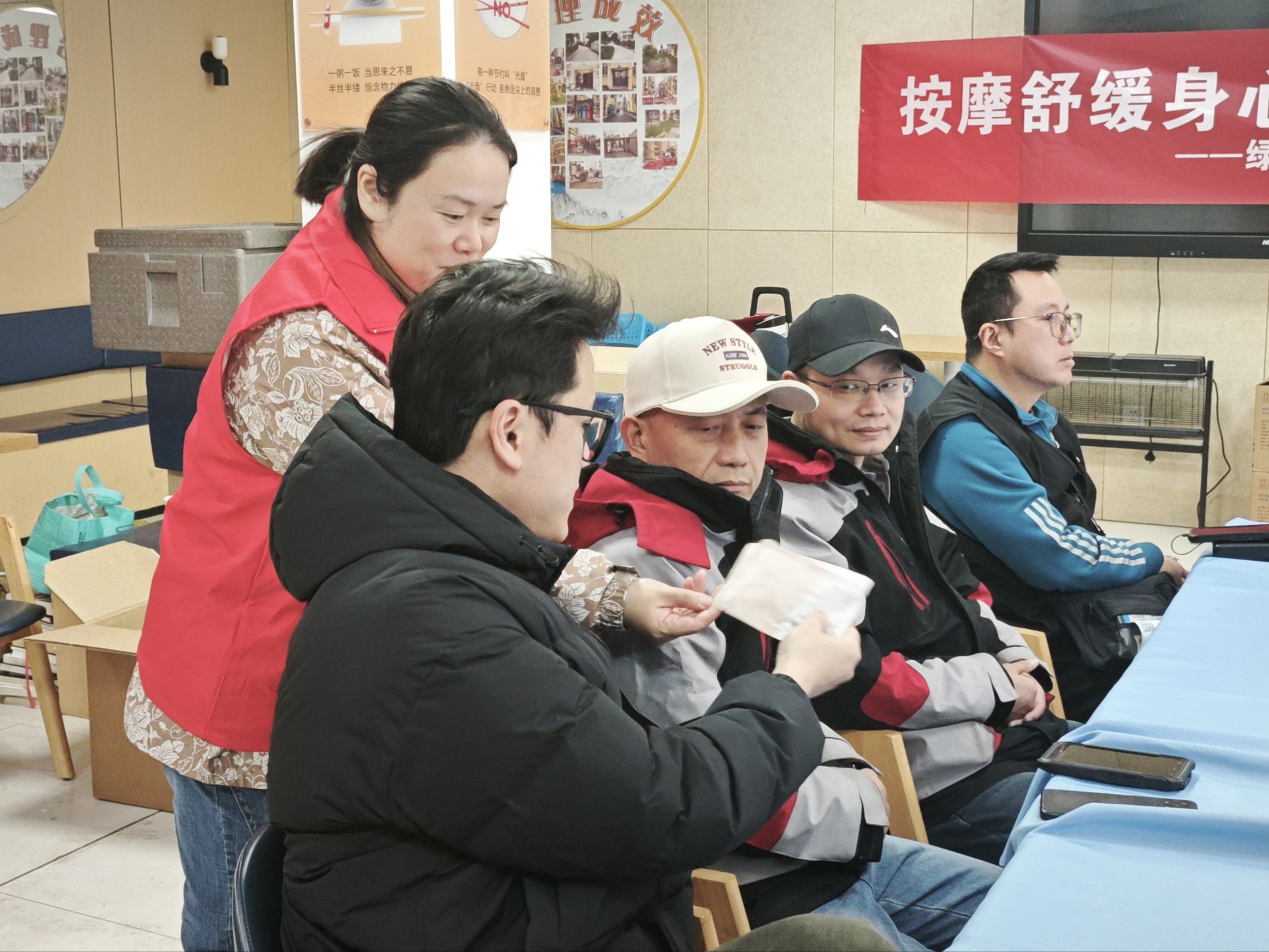 12月10日,武汉市青山区钢都花园街道社工站联合绿景苑社区工会、大炎昊科技养生理疗工作室共同在社区户外工作者驿站开展关爱新就业群体的暖心活动。活动聚焦于健康服务与物质关怀,通过理疗养生讲解与暖冬慰问等形式,为新就业群体送去社区的温暖与支持。