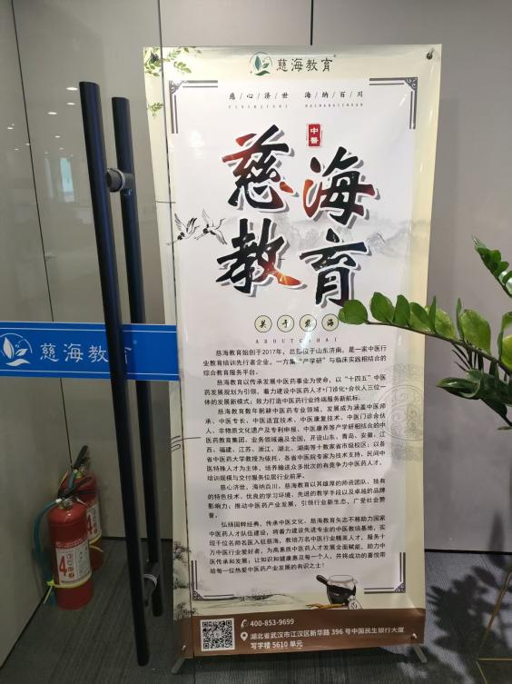 据了解,慈海教育咨询(武汉)有限公司总部位于山东济南。据其官网介绍:“山东慈海教育科技集团(慈海教育)始创于2017年,是一家中医行业教育培训先行者企业。”截至2023年,慈海教育设立了包括湖北在内覆盖全国14个省级行政区域的15家分校。慈海教育咨询(武汉)有限公司营业执照显示,该公司于2023年4月12日成立,法定代表人是王猛,地址在武汉市江汉区新华路396号民生银行大厦56层。