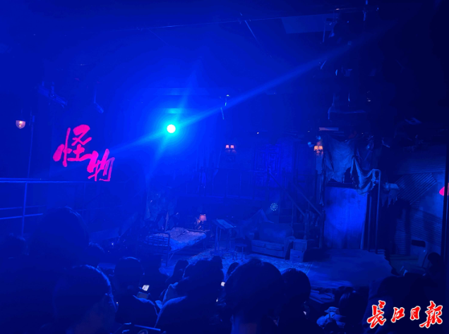 武昌区中华路的联创艺空间里,沉浸式悬疑音乐剧《怪物》以环绕式舞台设计圈粉无数。观众席居于中央,表演区域散布四周,演员时而近在咫尺倾情演唱,时而攀梯穿梭,观众隐于暗处仿佛成了剧情的一部分。