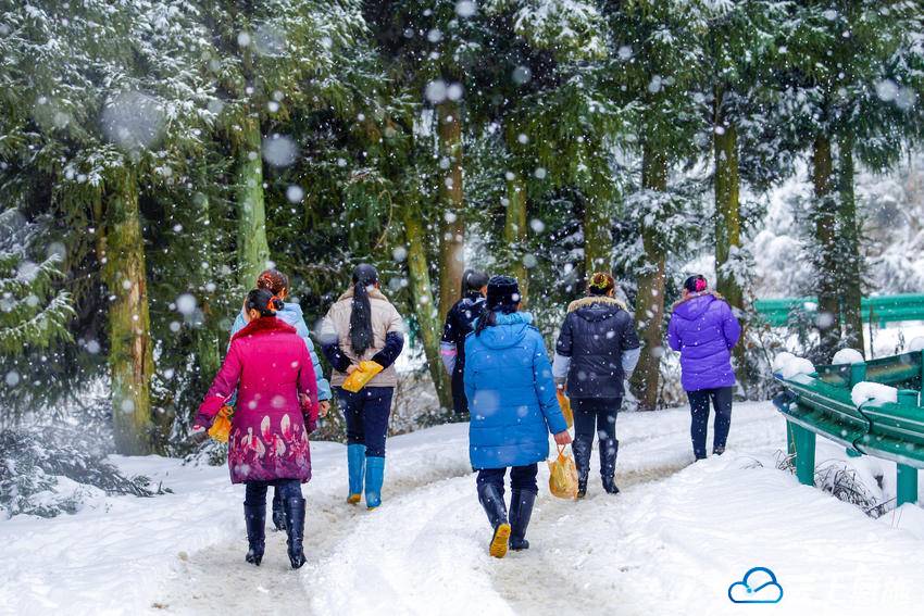 山间的小径上,不时能遇见赏雪的游人。孩子们在雪地里奔跑嬉戏,雪球飞舞,笑声洒满山谷;情侣们手牵着手,在雪地上留下并肩的脚印;老者拄着拐杖,慢悠悠地走着,欣赏着这难得的雪景。每个人的脸上都洋溢着笑容,被这纯粹的美景所感染,忘却了尘世的喧嚣。