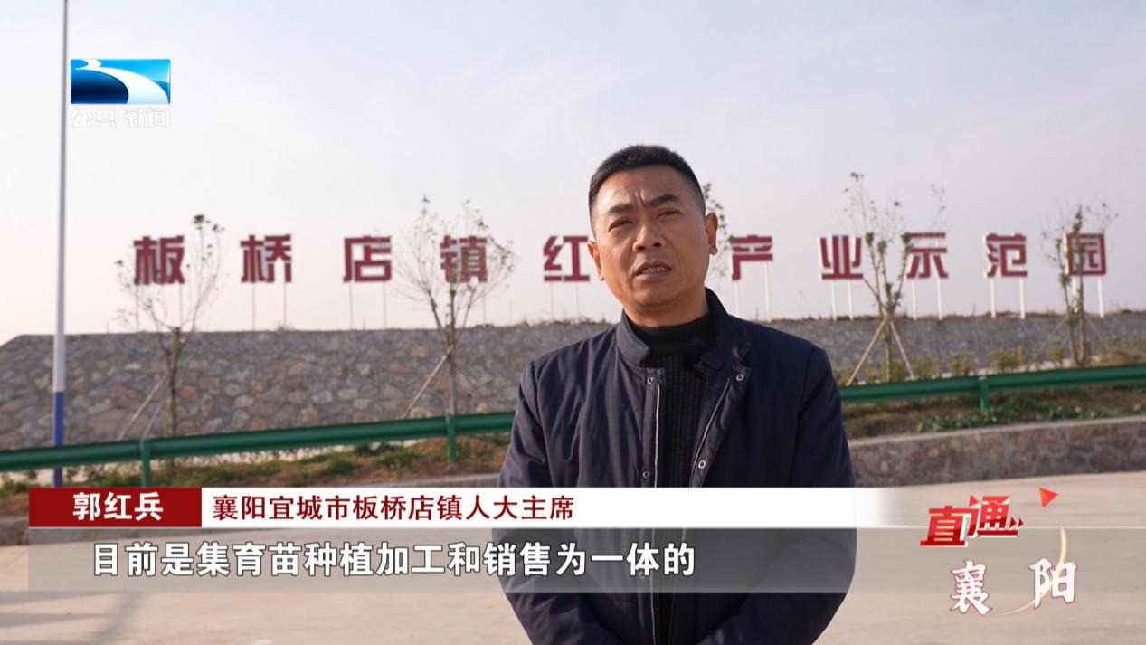 襄阳宜城市板桥店镇人大主席 郭红兵:我们这个红薯产业基地,目前是集育苗种植加工和销售为一体的,全产业链的一个基地,目前我们已经打造了产业园的种植基地有1000亩,引进外资企业来进驻经营育苗和加工以及销售,目前应该说是我们湖北省首家全产业链的唯一的一个红薯产业基地。