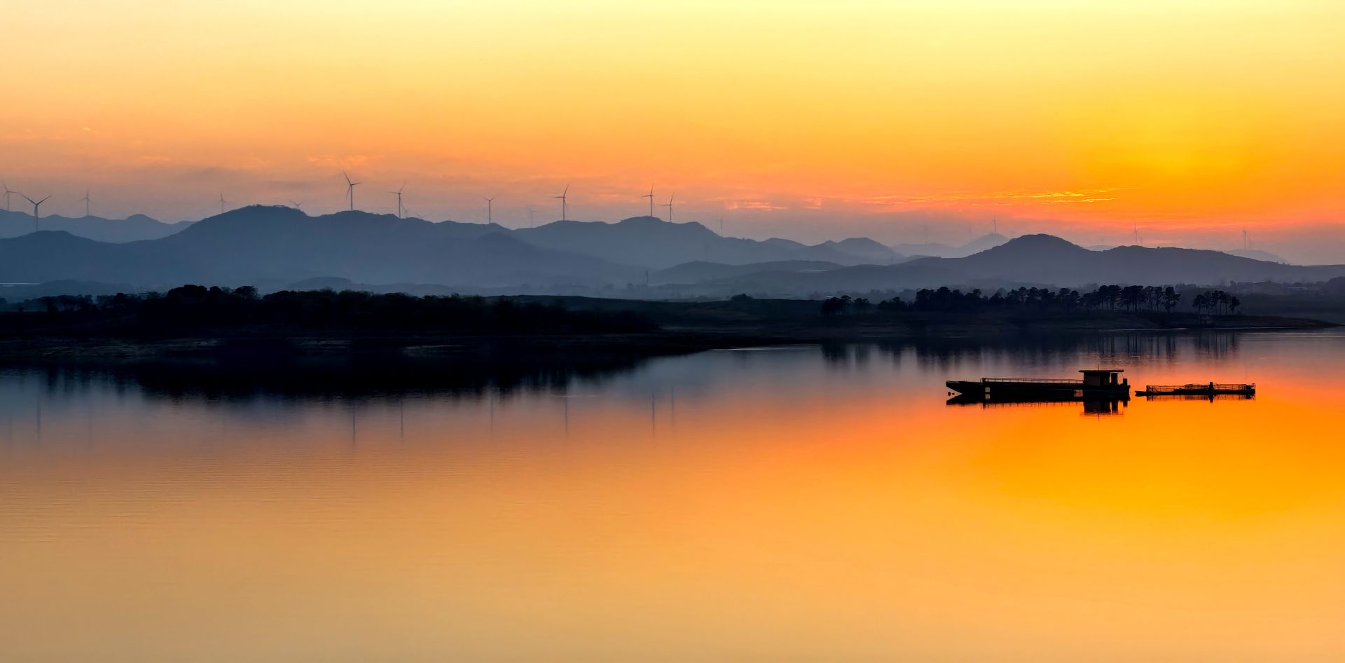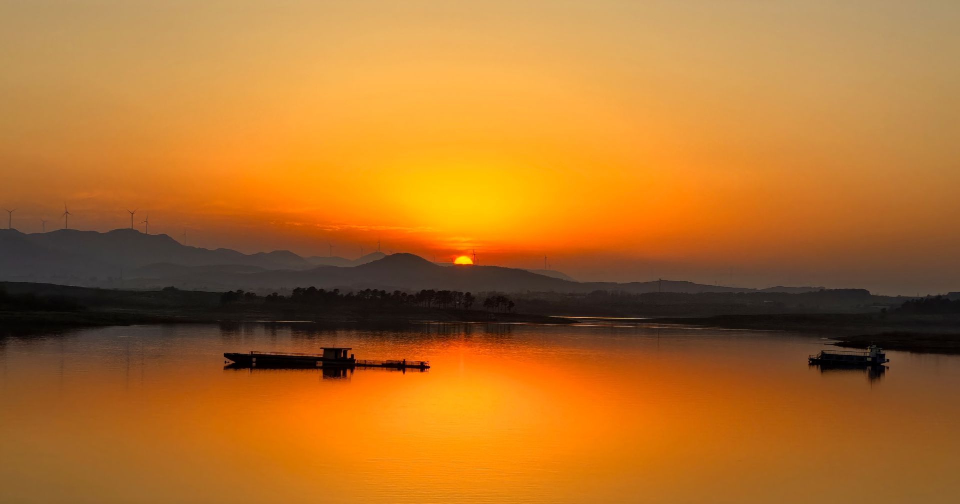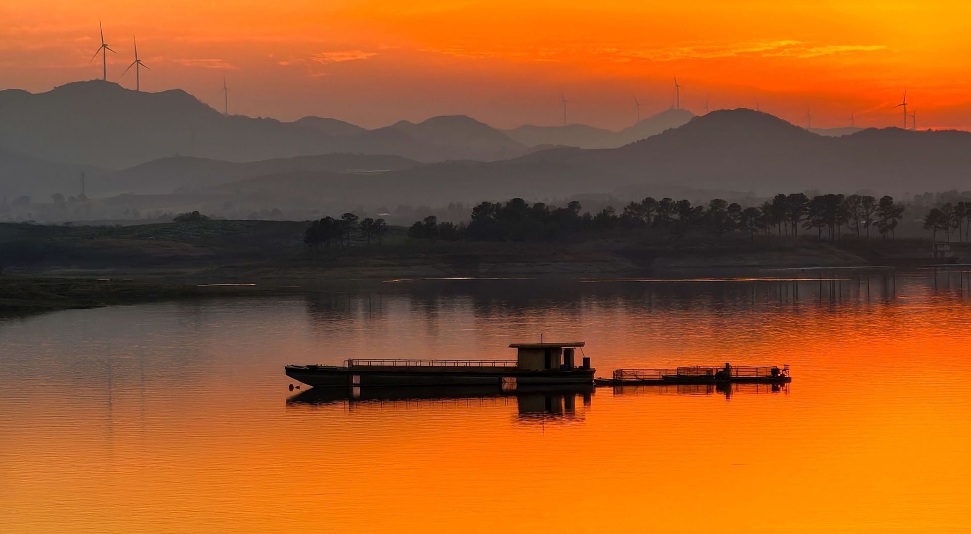 初冬,湖北省枣阳市熊河水库妩媚多姿、美轮美奂。傍晚时分,夕阳洒下余晖,光不是一道道的,而是泼洒的,流淌的,将大半湖水染成了暖暖的橙黄,看着便叫人心里温润起来。