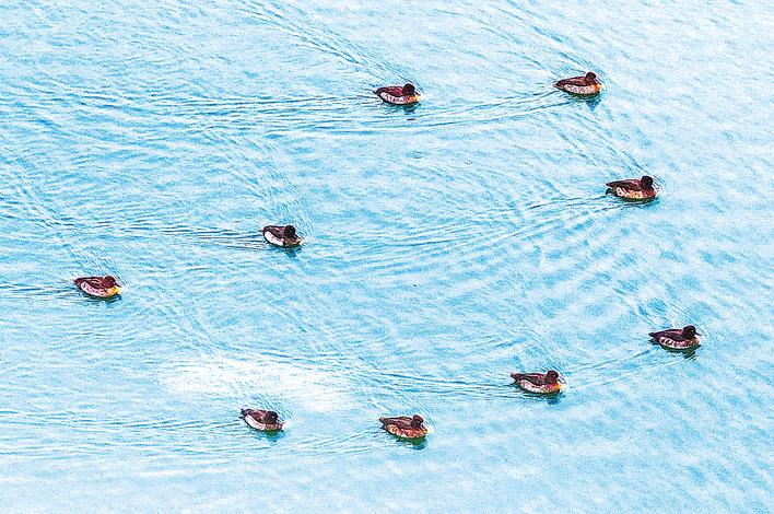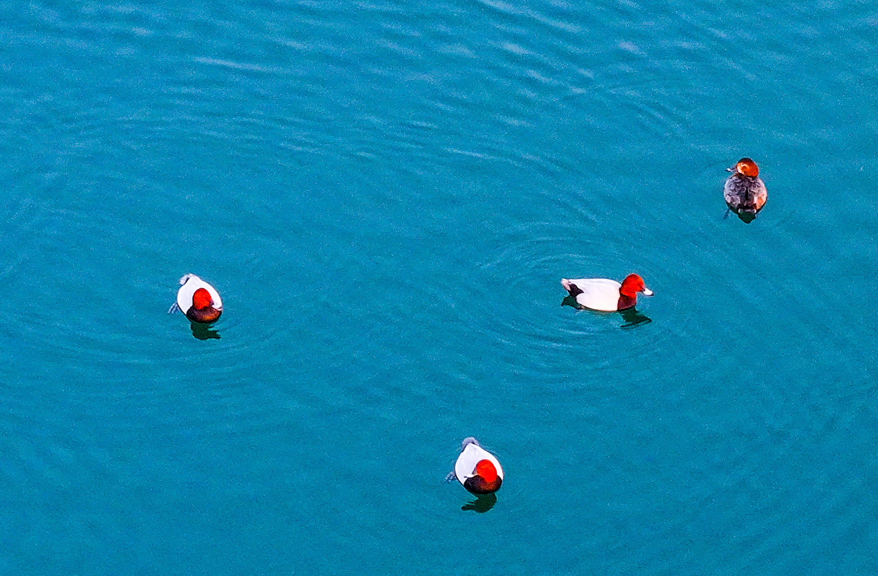 青头红头潜鸭相聚郧阳湖国家湿地公园