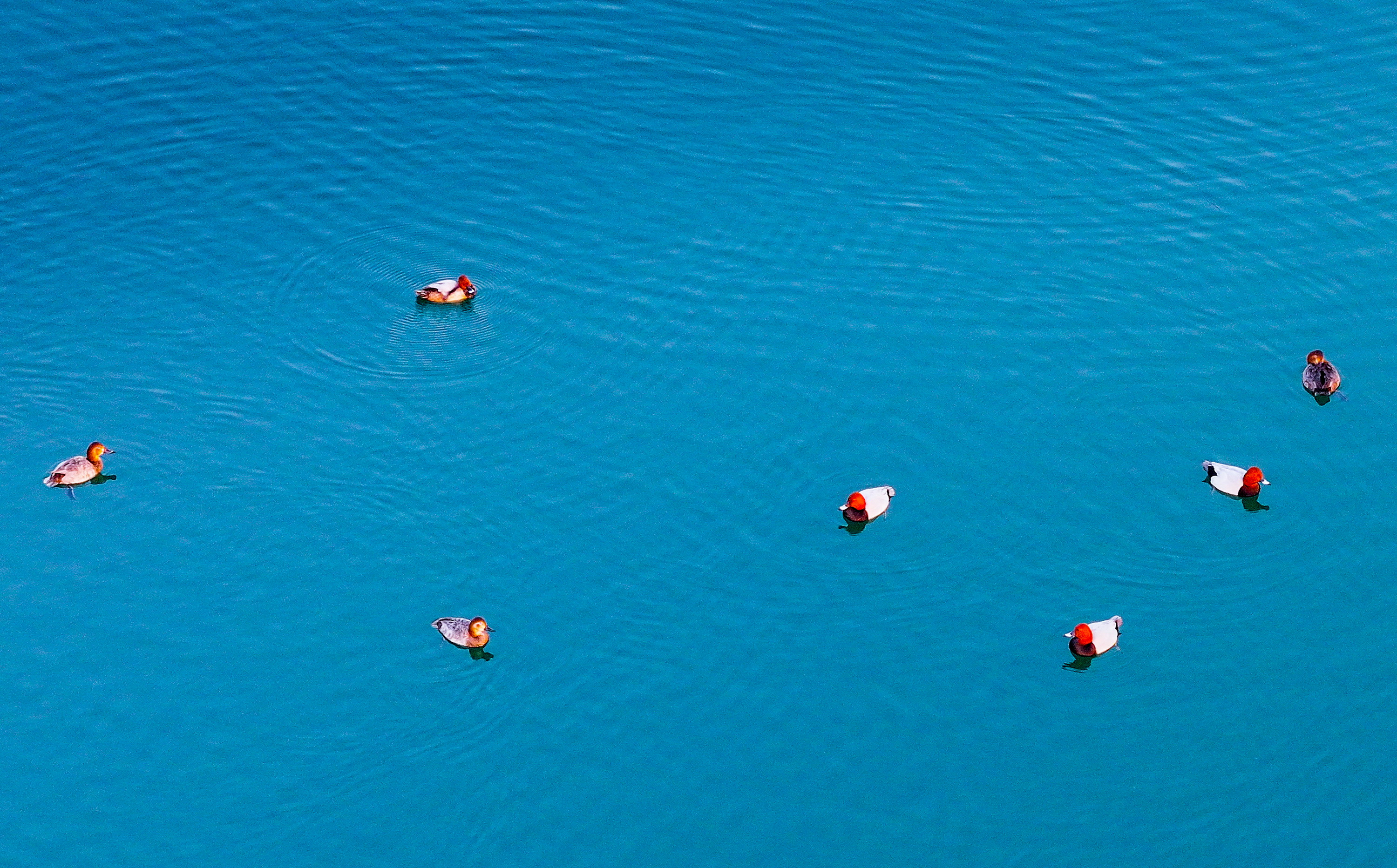 近日,在南水北调中线工程核心水源涵养地——十堰市郧阳湖国家湿地公园,十几只红头潜鸭在觅食嬉戏。