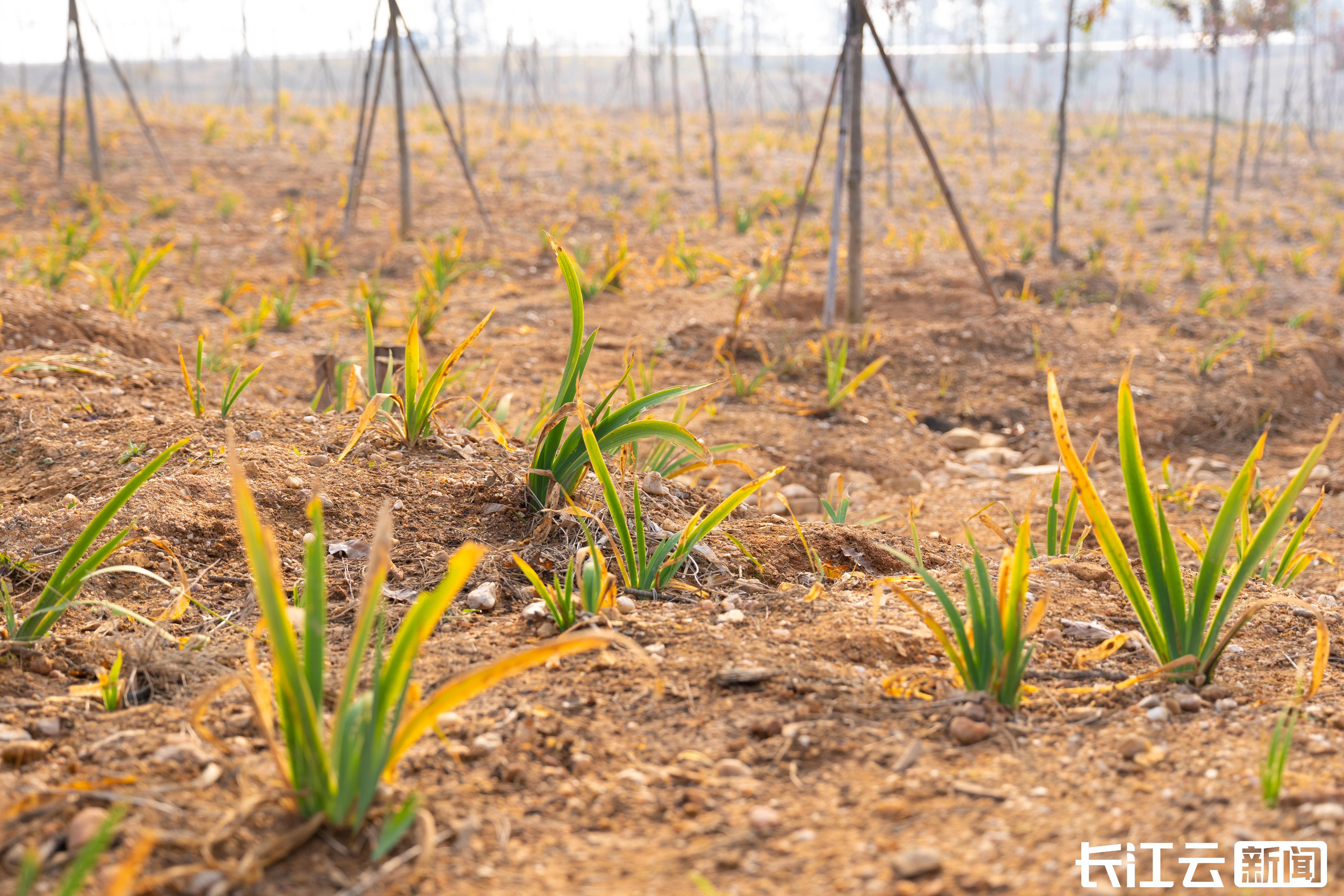 新洲区徐古街傅山村在新栽的国家储备林下种植的中药材射干。王晨阳 摄