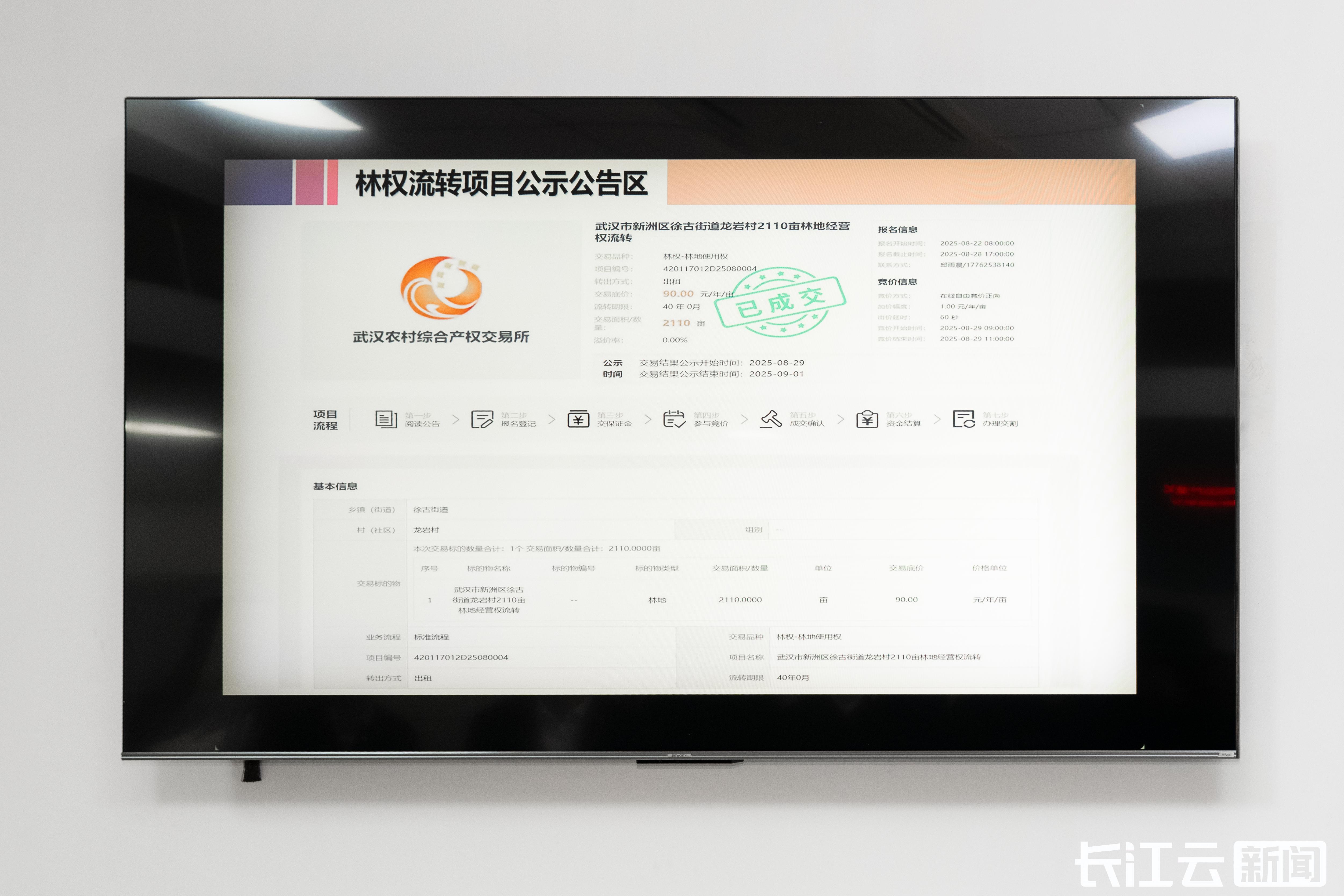 武汉市农交所林权交易平台显示的集体林地经营权流转成交信息。王晨阳 摄
