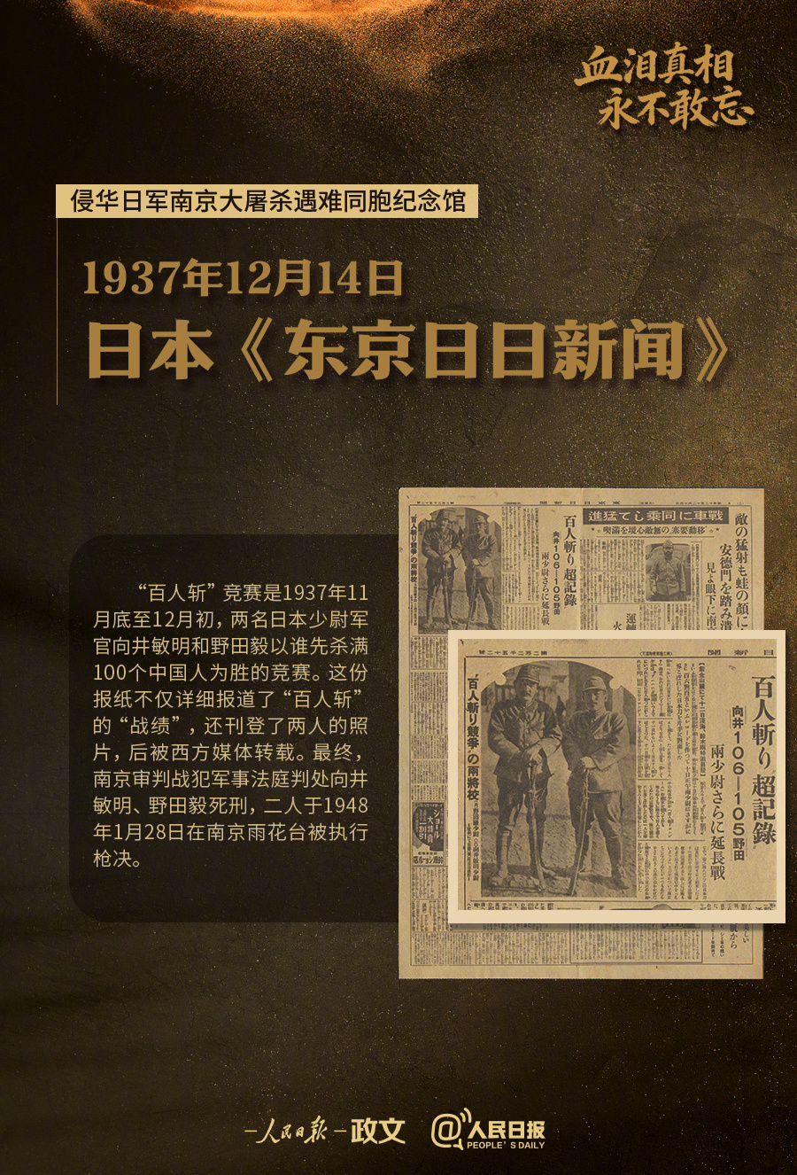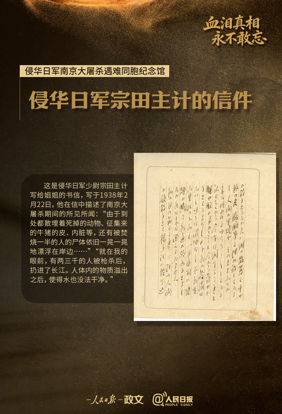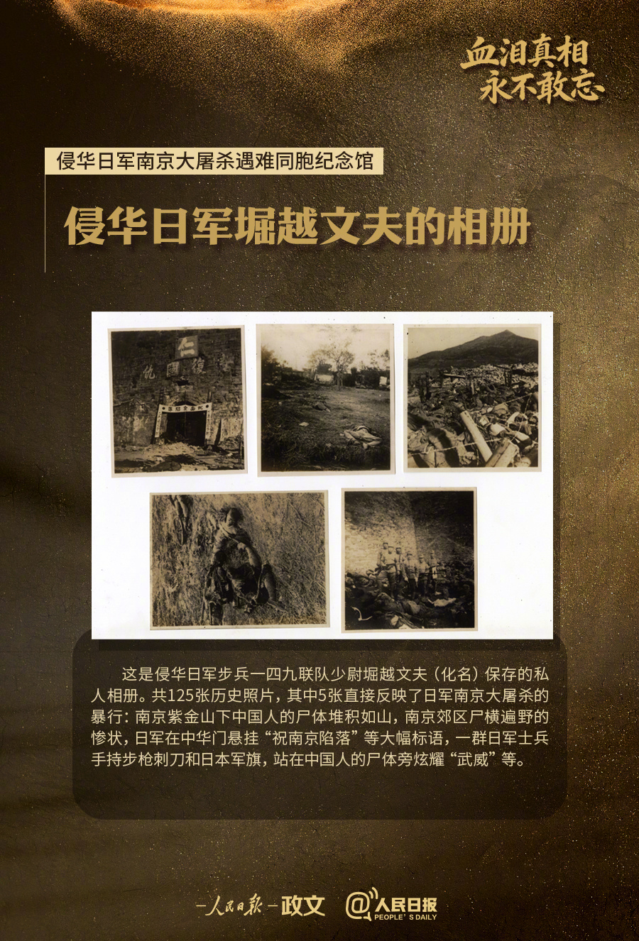 侵华日军的暴行照片集、盖有 “南京陷落纪念” 邮戳的信件、报道 “百人斩” 竞赛的报纸......每一件文物,都是固定历史真相的铆钉。今天,第十二个国家公祭日,昭昭前事,惕惕后人。不能忘!不敢忘!