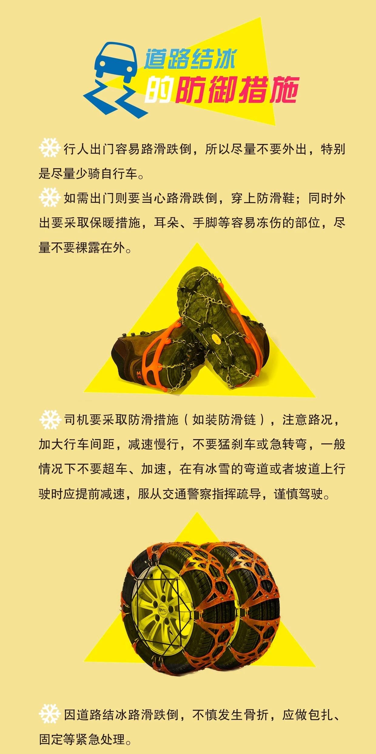 下雪天出行时,最好预留更多的时间。出行时要慢速走,每一步都要踩实,最好呈外八字、小步前行,保持重心稳定。行走时双臂微展、手不要插兜,以免因身体失衡引起跌倒。在户外多观察路面情况,特别要警惕薄冰路面,绕开大理石、瓷砖、冰面等光滑路面。