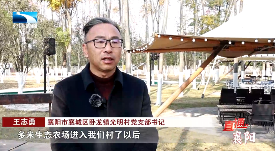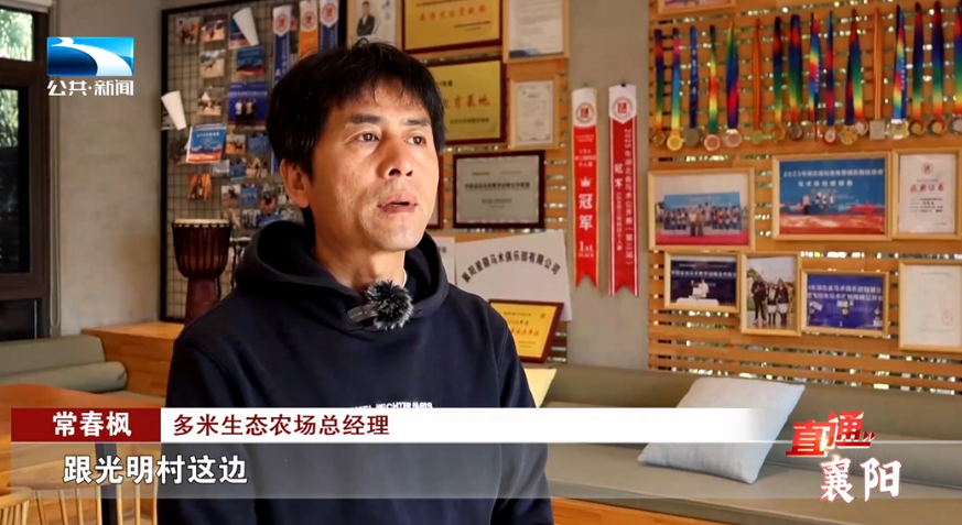 襄阳市襄城区卧龙镇光明村党支部书记 王志勇:多米生态农场进入我们村了以后,我们在他们的带动下,我们搞了黄桃基地、黄金梨园、草莓采摘。我们村里有60岁以上的老年人,都在他们这就业,每年有接近两三百个用工,村里每年有30多万元的集体经济收入。