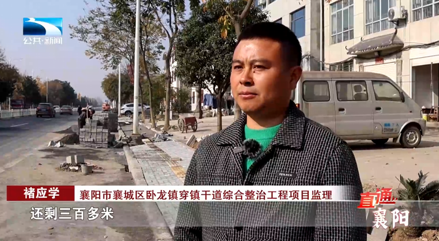 襄阳市襄城区卧龙镇穿镇干道综合整治工程项目监理 褚应学:我们现在主要是做路面的北侧人行道改造,道路维修、立面改造、完善绿化设施等,目前完成了一千二百米左右,还剩三百多米,预计在本月底之前完成。