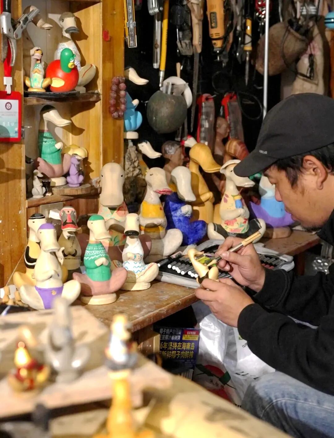 何小路将这只可爱的鸭子命名为“聂九鸭”。随着《枭起青壤》的热播,这只自带剧情buff的萌物迅速走红,成为网友追捧的“顶流”,不少网友直呼“求上链接”,还纷纷提议定制“发财鸭”“大学生鸭”“暴富鸭”“度假鸭”等特色“皮肤”。面对市场热情,何小路不断创新,将创作材质从陶瓷拓展至木雕,并融入非遗工艺,让“聂九鸭”拥有了更多身份与模样。