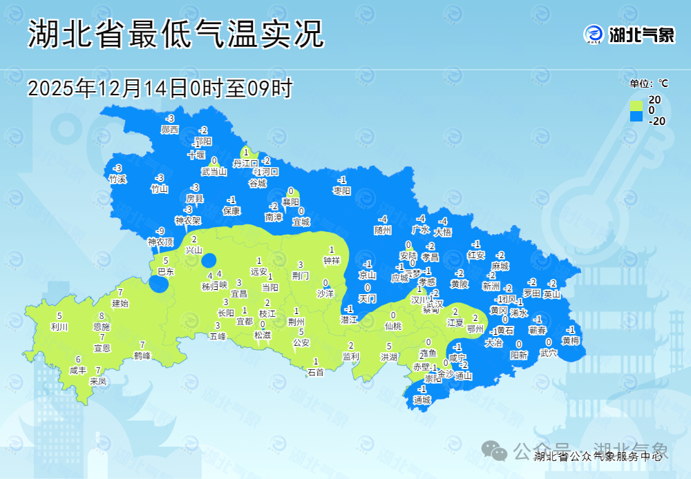 12月14日08时-15日08时,全省晴天。最高气温11~15℃,最低气温北部-4~-1℃、南部-1~3℃,偏南风2到3级。