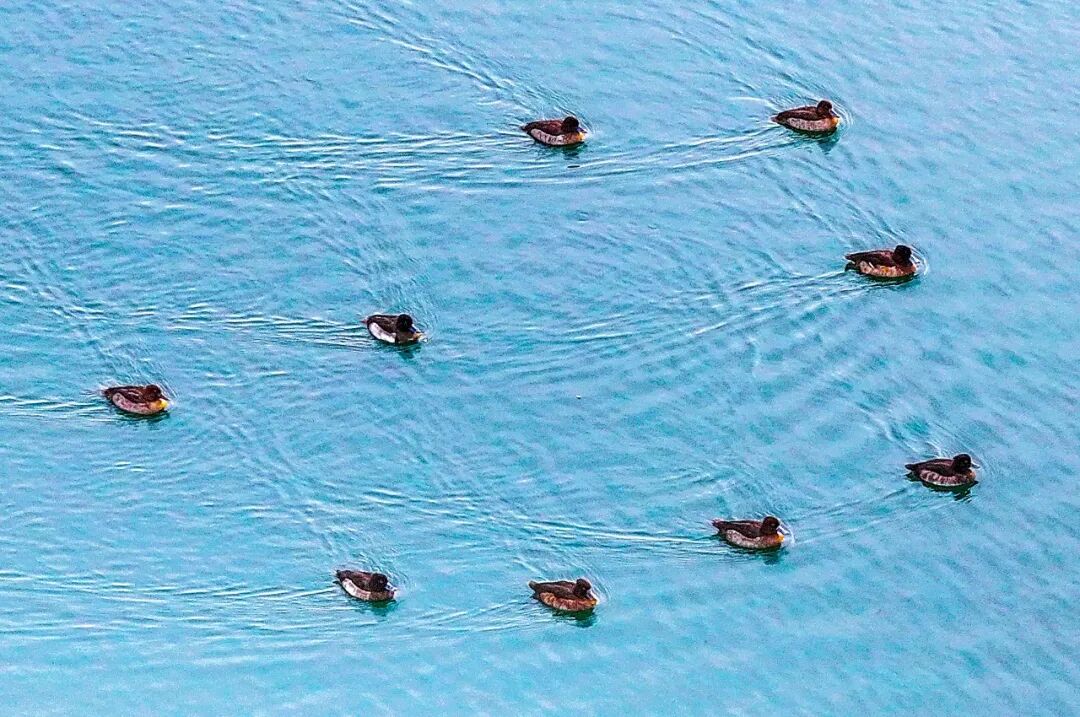 近日,摄影爱好者在柳陂镇郧阳湖国家湿地公园拍到了十几只国家一级保护动物青头潜鸭在水中嬉戏觅食。