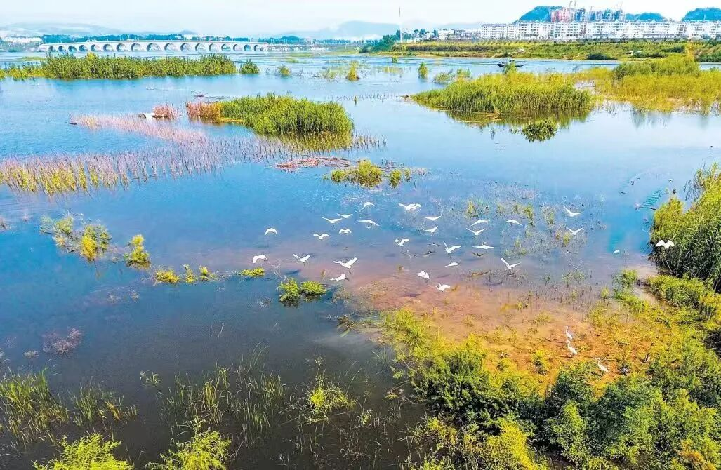 近年来,郧阳区坚持“共抓大保护、不搞大开发”理念,以保护汉江母亲河为核心,以提升全域生态环境为重点,统筹水资源、水环境、水生态治理,着力打造水清、岸绿、河畅、景美、人和的水生态空间,郧阳湖水质常年保持在Ⅱ类及以上标准,吸引众多珍稀候鸟纷纷聚集汉江河畔,栖息繁衍,种群数量逐年增加。