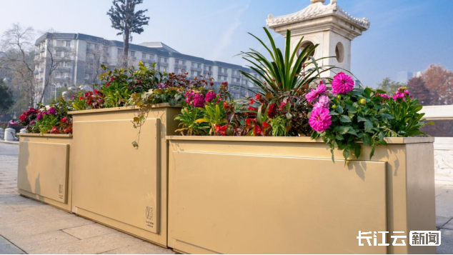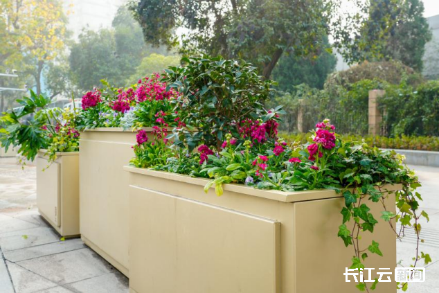 “看到这么明艳的花会忍不住看两眼,花箱上的花卉搭配得非常有层次感。”一位路过的阿姨笑着说,花箱是可以移动的景观,不仅美化了环境,也温暖了时光。