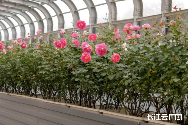 为迎接元旦的到来,武昌区城管执法局绿化队通过精心养护,让月季绽放在冬日的街头,在友谊大道快速路的中分带上,1.8公里的“仙境”月季长廊正肆意铺展,像是把“花房”搬上了城市交通线:弧形的金属框架撑起透亮的顶,中分带的花槽里满是盛放的月季,粉艳的花团裹着翠绿的枝叶,顺着道路曲线一路铺展。车辆穿梭其间,头顶是透进来的柔光,身旁是垂落的花影,通勤路瞬间变成了“穿花而过”的浪漫旅程。