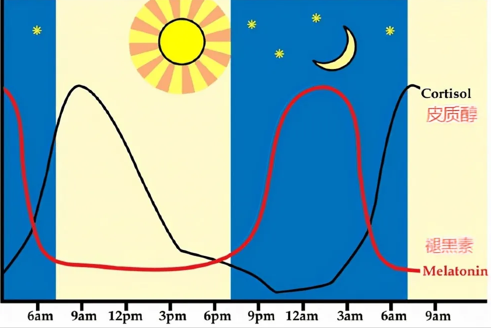 综合来看,左右人体睡眠节律的激素主要有两种:一是褪黑素,另一种就是皮质醇。
