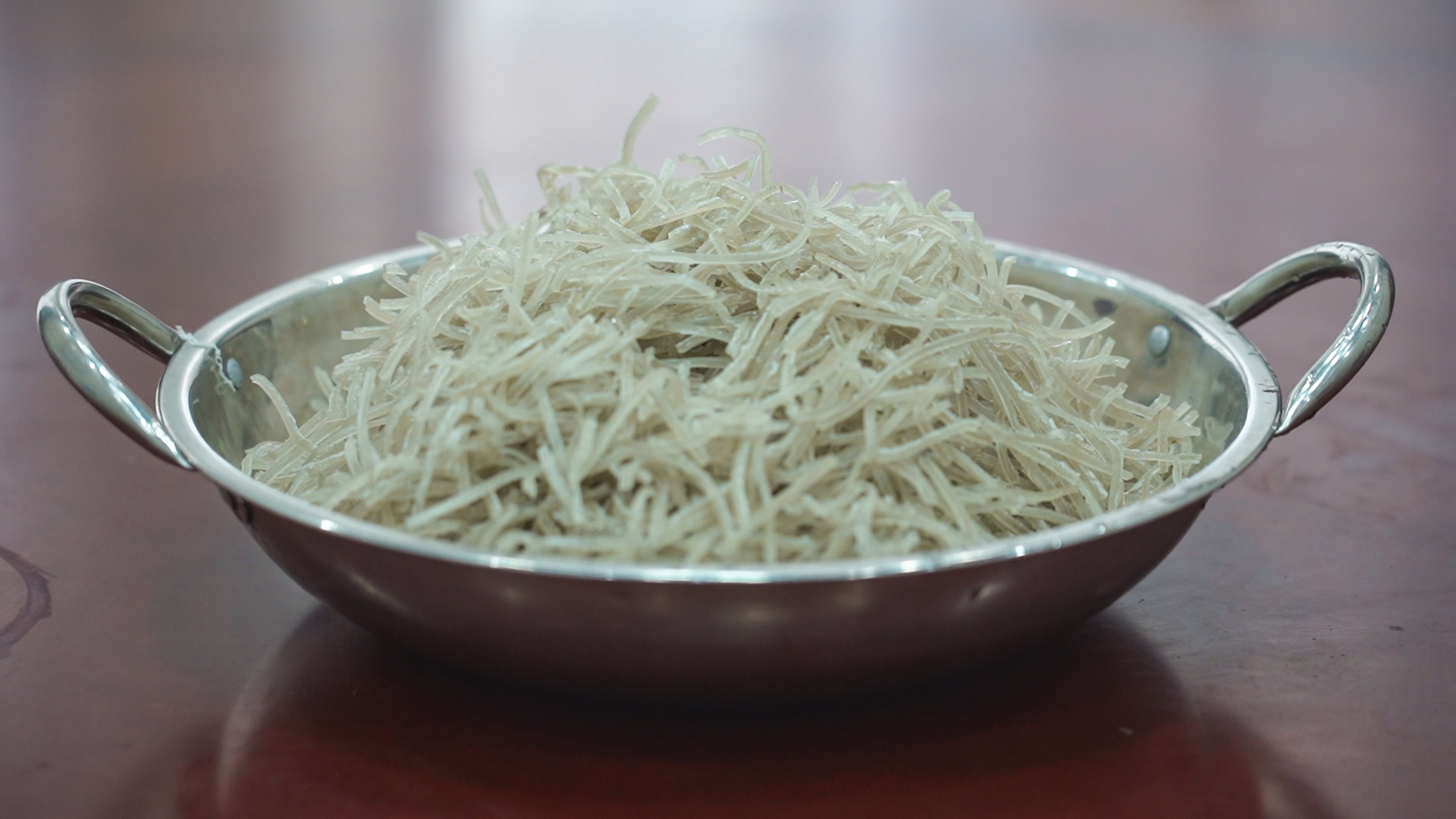 龚阳先说:“铜盆粉是我们石城镇的特产,从老一辈传承至今。我们家始终坚守这份手工制作技艺,每逢冬季我们全家老小一起制作,都很喜欢这道家乡的美味。”