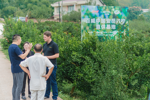 2023年,为推动青柠产业持续健康发展,百威中国联合安岳当地政府与村集体创新组建安岳青柠盟商贸有限公司,集合当地资源优势和企业先进管理理念,推动青柠产业现代化、规模化发展。该公司总经理程萌介绍:“目前项目已在安岳帮扶种植青柠308亩,其中208亩总产量达254.8吨,另100亩智能化青柠示范基地进入盛产后有望实现亩产翻倍。”公司还优先吸纳家庭困难人群,提供高于当地平均水平的劳动报酬,并将部分利润用于回馈村集体,形成“产业反哺乡村”的良性循环,不仅富了群众口袋,更聚了乡村人气、暖了百姓人心。