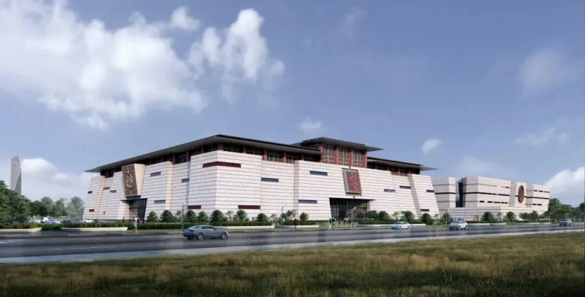 荆楚文化遗产保护传承项目位于荆州市太晖路与复兴大道交叉口西南区域,紧邻荆州博物馆,总建筑面积72511平方米,建设内容包含楚文化博物馆、荆州文保中心新大楼,计划于2027年4月完工,当前该项目雏形已现。