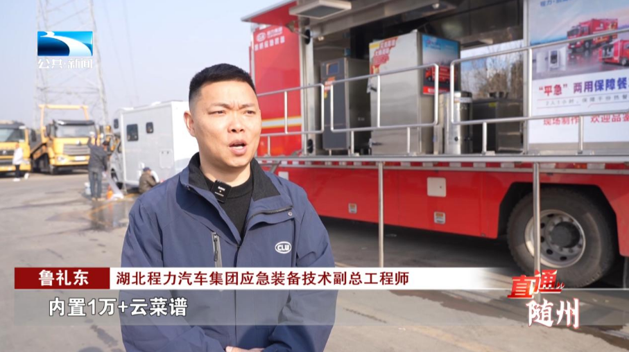 湖北程力汽车集团应急装备技术副总工程师 鲁礼东:内置1万+云菜谱,根据车辆内部空间,配备不同数量的设备,每小时可保障300到1000人饭菜供应。