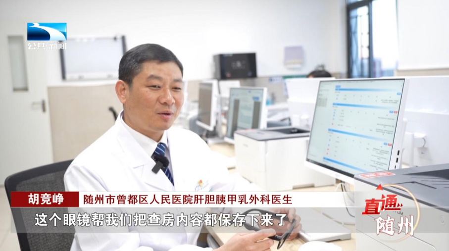 随州市曾都区人民医院肝胆胰甲乳外科医生 胡竞峥:这个眼镜帮我们把查房内容都保存下来了,也方便我们日后的查询。