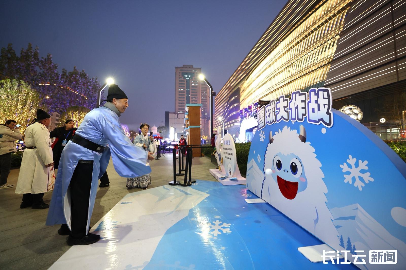 记者现场看到,冰雪嘉年华划分为冰雪童话区、暖意江城区和急速雪境区三大主题区域,集互动游戏、打卡拍照、文艺表演、商品展销于一体。在冰雪童话区,游客们踊跃参与“雪球大作战”“雪中寻宝”等趣味挑战,带着爱宠参加“宠物冰雪运动会”的家庭也欢声不断。暖意江城区巧妙融合城市地标,将武汉热门打卡点“搬”到现场,并为其“穿上毛衣”。保元里地标下,游客们热闹玩起火锅消消乐;黄鹤楼地标前,游客与NPC对诗有来有往;知音号游轮前,游客与NPC共舞瞬间穿越老汉口风情;巴公房子地标前则集结诸多游客创意合影……急速雪境区内,四大雪场的集中展销为爱好者提供了便利咨询,现场大屏联动各雪场直播间,福利持续放送。而穿梭全场的“一鹅”、北极熊等吉祥物巡游,以及定时上演的“雪域狂欢”互动表演,一次次将现场气氛推向高潮。