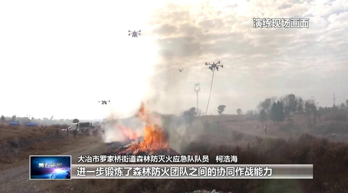 大冶市农兴低空综合服务有限公司总经理 吴凯:“为了填补在地空演练的空白区域,农发集团大约投入了500万元,采购一批大中型无人机,特意改造成森林灭火装置。”