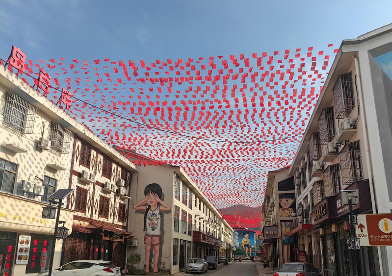 除了楹联,丰富的文化活动持续滋养文明乡风。在石贵发组,一幅700平方米的巨型壁画《仙岛湖之恋》,巧妙融入了湖光山色、天空之城传说以及阳新布贴、采茶戏等非遗元素,成为吸引游客拍照打卡的文化新地标。每月为60岁以上老人举办的“集体生日宴”,不设礼桌、不收随礼,只有温馨的祝福和欢声笑语;专为结婚50年以上夫妇举办的“金婚宴”,通过“晚辈洗脚”“共切蛋糕”等环节,传递孝道亲情与和谐婚姻观。