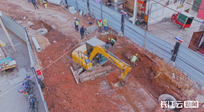 近日,随州广水市理学街社区防洪排涝通道建设施工现场,挖掘机轰鸣作业,铲斗上下翻飞。几名施工人员紧随其后,在机械暂停的间隙快速清理沟底碎石,人机配合默契十足。这里正是广水城区 12 处易涝点之一,曾让周边居民备受困扰。