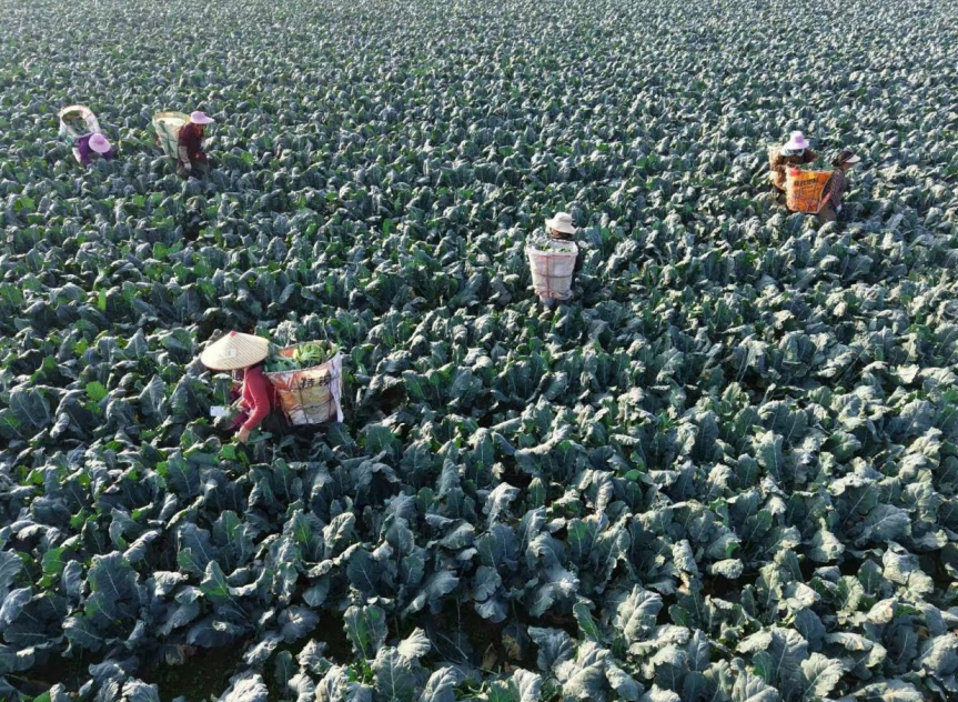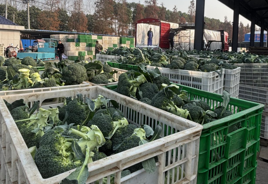 眼下正是西兰花上市的高峰期。12月17日清晨,石首市调关镇连新垸村的万亩基地里,一百多名“砍花工”已忙着采收。元丰合作社的订单早已排满,负责人刘明香和乡亲们“着急”的是抓住当前高价窗口:“现在多卖一天,就多赚一天的好价钱,得赶在后期气温升高、价格走低前。”
