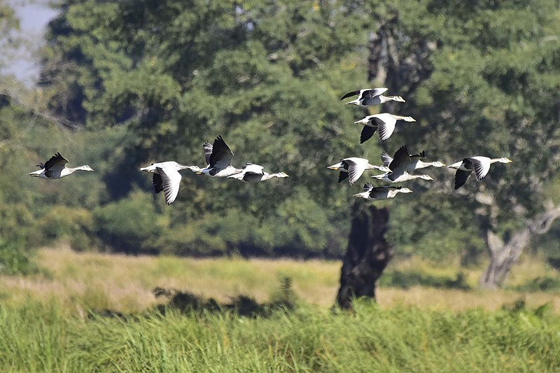 印度阿萨姆邦卡齐兰加国家公园,一群斑头雁。(图源:央视新闻)