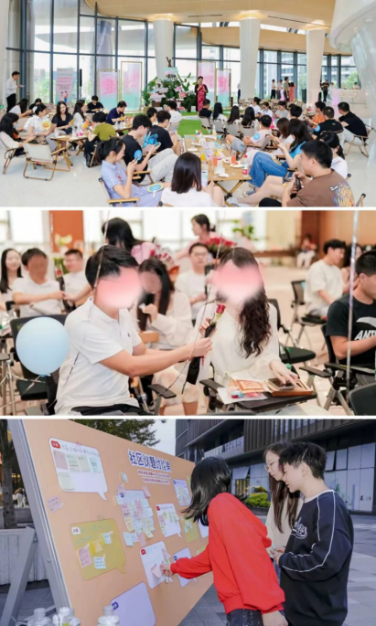 社区的公告栏前,几个年轻人指着联谊活动的照片,笑闹着寻找彼此的身影;共创墙上贴满了彩色的心愿帖——“希望给我的柯基找个女朋友”“求组队夜跑”“建议办一场星空音乐会”……每一个小心愿,都被郑重对待。
