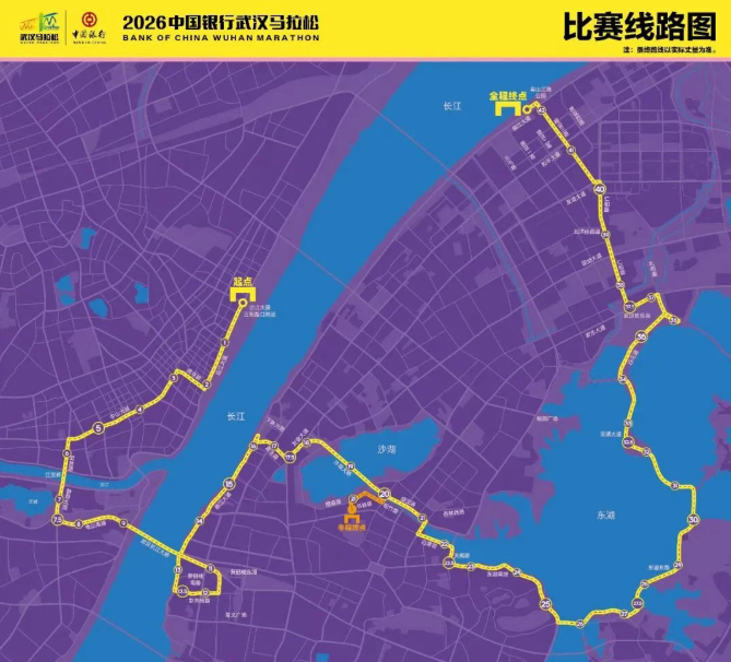 2026年汉马赛道35公里以后,改为途经华侨城湿地公园白马道、飞雁路、欢乐大道地面层、仁和路、友谊大道、建设三路,最后于青山江滩内冲刺。