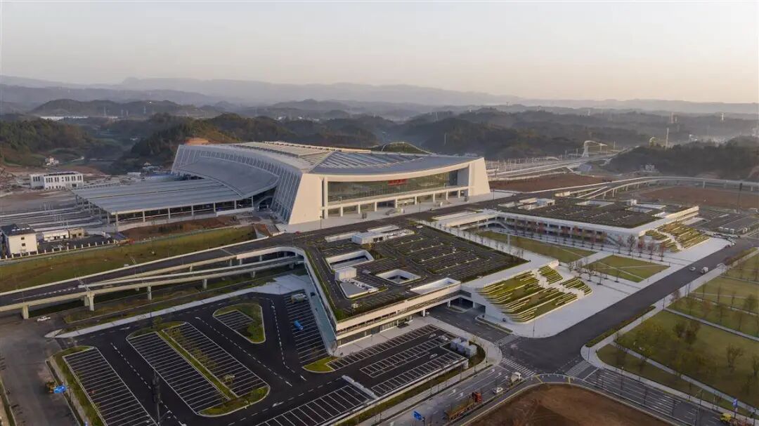 宜昌北站以“高峡平湖”为灵感,将三峡的雄奇与水电站的伟力融入设计。宏大尺度的站房,本身就是一曲对“世界水电之都”的致敬。