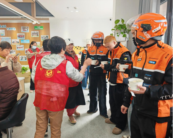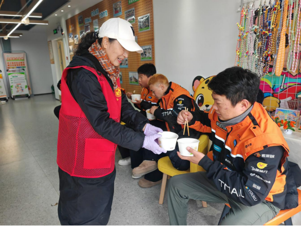 社区特别邀请了辖区内快递小哥、物业保安、保洁人员等一线工作者代表前来。一碗碗热气腾腾的饺子送到他们手中,一位快递小哥接过饺子时连声感谢:“这么冷的天,能吃到大家亲手包的饺子,身子暖,心里更暖!”热饺子驱散了冬日的寒意,也拉近了社区与一线工作者之间的距离,让温情在冬至日缓缓流淌。