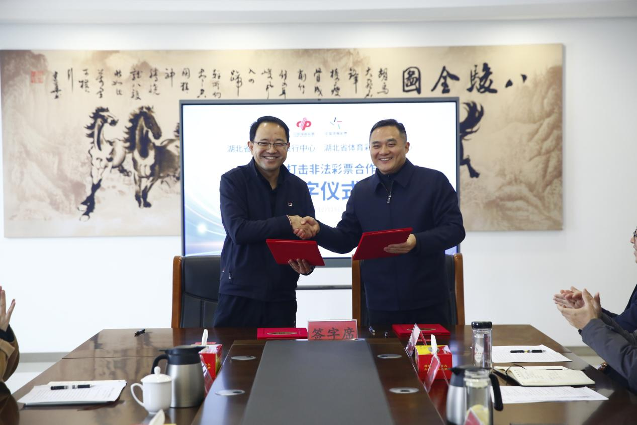 12月18日,湖北省体育彩票管理中心与湖北省福利彩票发行中心在汉签署合作文件,正式宣布建立联合打击非法彩票的合作机制,共同守护国家彩票公信力、维护群众合法权益。省级体彩、福彩机构以机制化方式共同打击非法彩票,在国内彩票行业尚属首次,在省级层面强强联合、深度携手打击非法彩票,标志着湖北彩票行业协同监管,深化责任建设进入全新阶段。