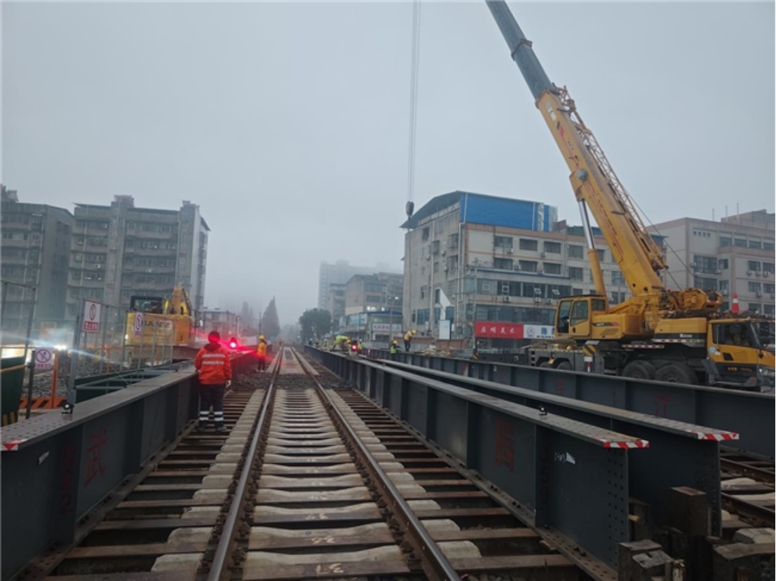 此次架空梁拆除是汉丹线平改立工程的“咽喉”工序。面对施工时间紧、安全风险高、工序交叉多等挑战,项目部通过模拟推演、现场交底、实时监测等手段,确保每一环节可控、在控。施工期间同步开展冬季设备隐患排查,重点防范“三折”风险,对施工区段线路、道岔进行全面检查,及时消除设备隐患,筑牢营业线施工与铁路运营双重安全防线。