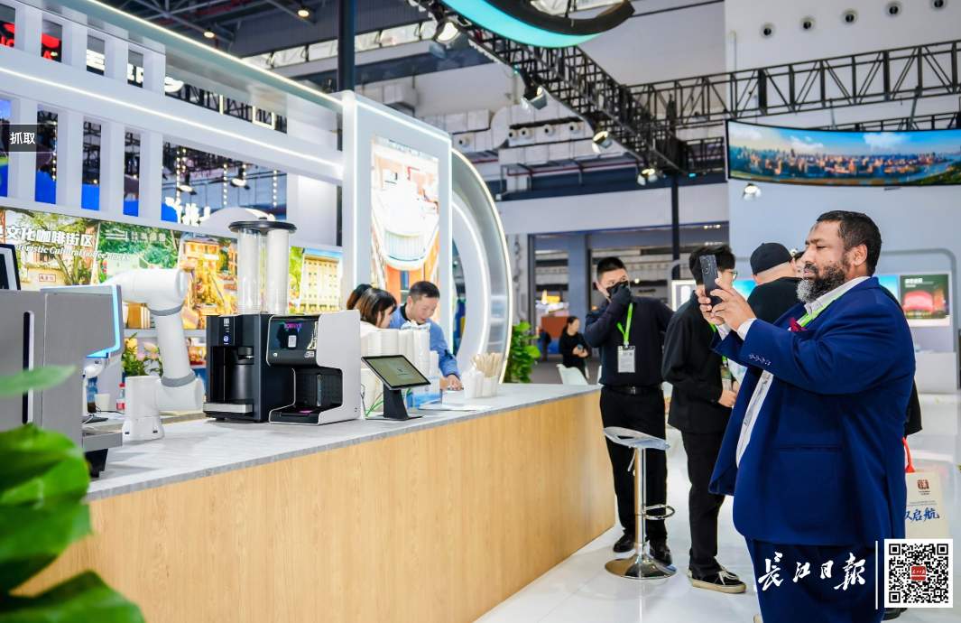 来自孟加拉国的旅行商罗曼特意用手机记录下咖啡制作全过程,他点赞道:“这个设计充满创意,既能传递武汉文旅特色,也让交流氛围更轻松。”