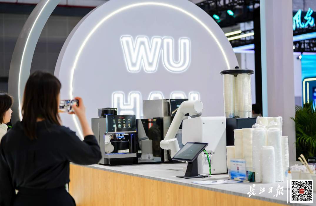 咖啡洽谈区为专业买家与武汉文旅企业打造了温馨且高效的深度交流平台。展台内的智能机器臂仅需2分钟即可制作出印刻武汉文旅元素的专属定制咖啡,成为现场吸睛亮点。