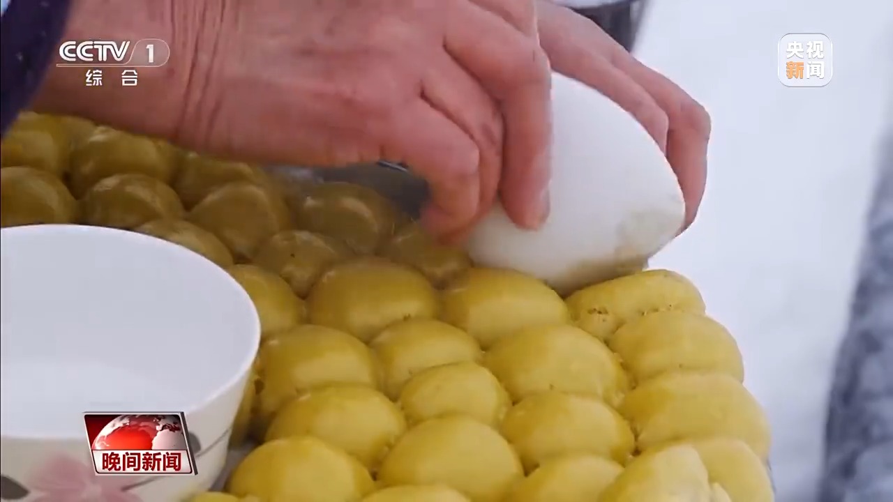 在东北,冬至包粘豆包既是一项传统,也是人与人之间联络感情的方式。在黑龙江省孙吴县沿江满族达斡尔族乡,村民们带上自家磨的江米面、熬煮的红豆馅,走进炕火最旺的人家,边包粘豆包,边唠家常。蒸熟后的粘豆包晶莹饱满,随即被端到室外冷冻。在天然低温下迅速结冻,装入布袋存入仓房,可供整个冬季食用。
