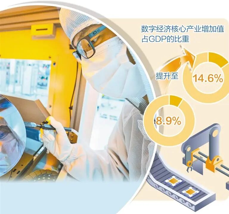 依托“五谷”,“十四五”期间,武汉高新技术产业增加值占GDP的比重从26.2%提升到30.4%,数字经济核心产业增加值占GDP的比重从8.9%提升到14.6%。全市高新技术企业数量从8000多家增长到16000多家,每万家企业中高新技术企业数量达171家。
