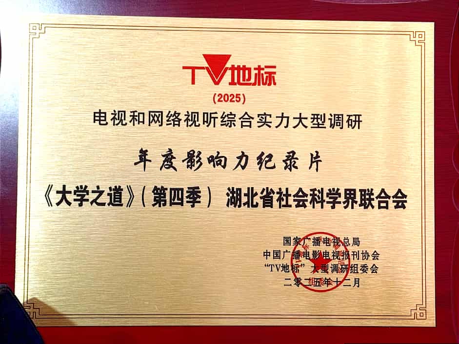 12月19日下午,在北京举行的“TV地标(2025)”大型调研成果发布会上,国家广播电视总局中国广播影视报刊协会"TV地标"大型调研组委会,为湖北省社会科学界联合会牵头打造的国内首档大学生立德成长纪实节目《大学之道》第四季等9部作品颁发重量级奖项——“年度影响力纪录片奖”。同获该奖项的还有来自上海广电、苏州广电、广东卫视、深圳广电等单位选送的作品。