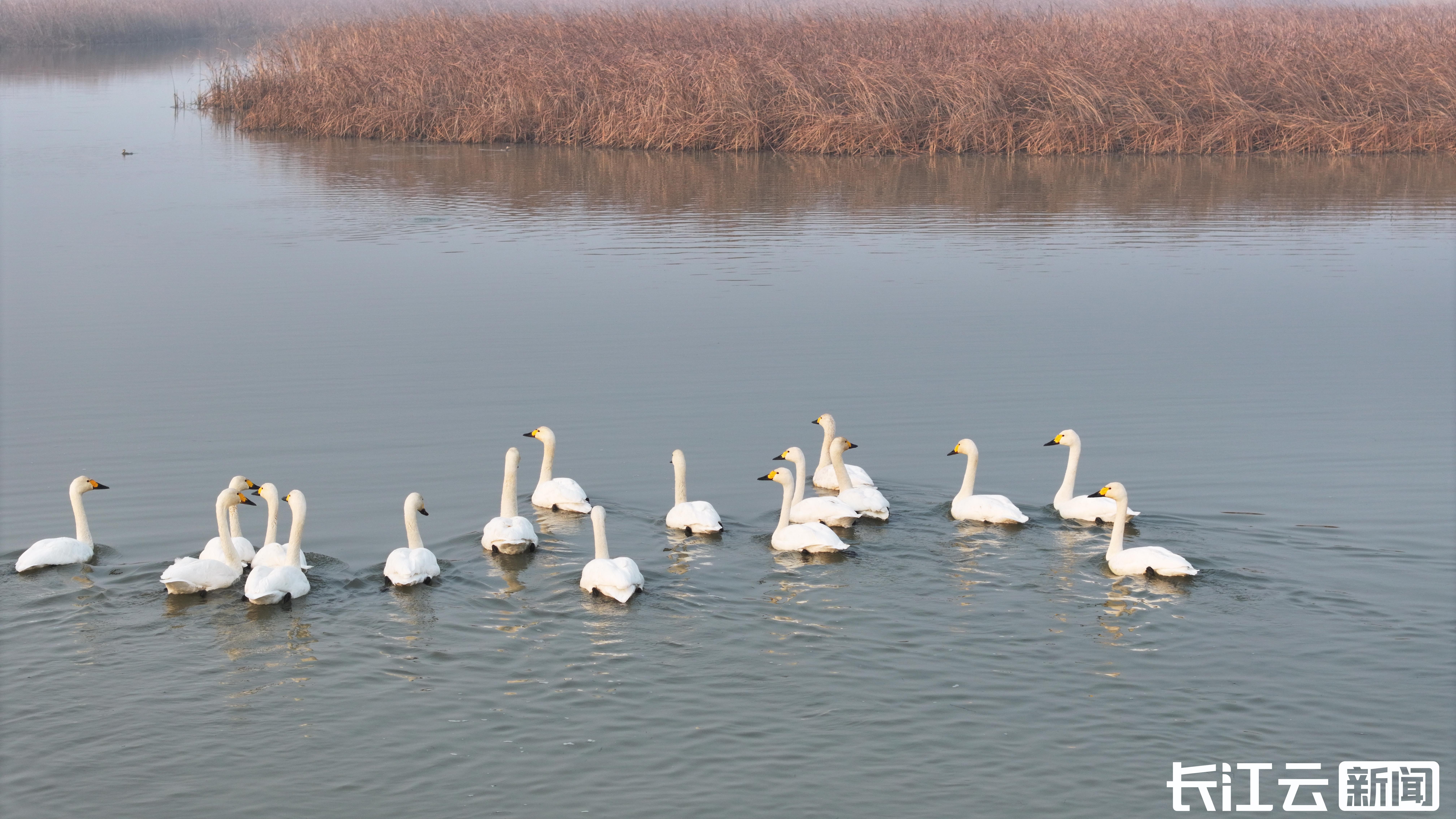“17只小天鹅在天鹅洲组团嬉戏觅食,这是今年11月以来,我们第三次发现小天鹅的身影。”湖北宜城万洋洲国家湿地公园管理处宣教科负责人顾靖介绍,这也是小天鹅连续三年光顾宜城,这里良好的水域环境和丰富的食物,逐渐就成为了小天鹅栖息越冬的乐园。