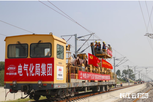 2024年5月沪渝蓉沿江高铁武宜段首条接触线成功架设